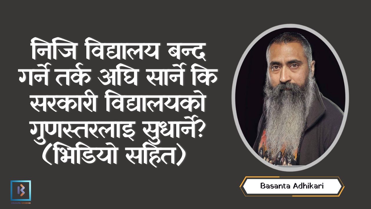 आजको बहस निजि बिध्यालयलाइ बन्द गर्ने वा निरुत्साहित गर्ने भन्दापनि, सरकारी बिध्यालयहरुको सेवाको स्तरलाइ कसरि राम्रो बनाइ सक्षम नागरिक तयार गरि देश र जनताको भबिस्यलाइ सहि दिशानिर्देश गर्ने तथा करदाताले तिरेको करको रकमलाइ दुरुपयोग हुन नदिने भन्नेकुराको हुनुपर्दछ । यदि सार्वजनिक विद्यालयको गुणस्तरलाइ सुधार गरि निजि क्षेत्रको स्तरमा ल्याउन सकेको खण्डमा, निजि स्कुल बन्द गर्ने वा उनीहरुलाई निरुत्साहित गर्ने नीति अवलम्बन गर्ने कस्ट गरिरहनु पर्ने छैन, मानिसहरु स्वबिबेकको प्रयोग गरि स्वस्फुर्त रुपले सार्वजानिक विद्यालय तर्फ आफै आकर्सित हुनेछन् ।