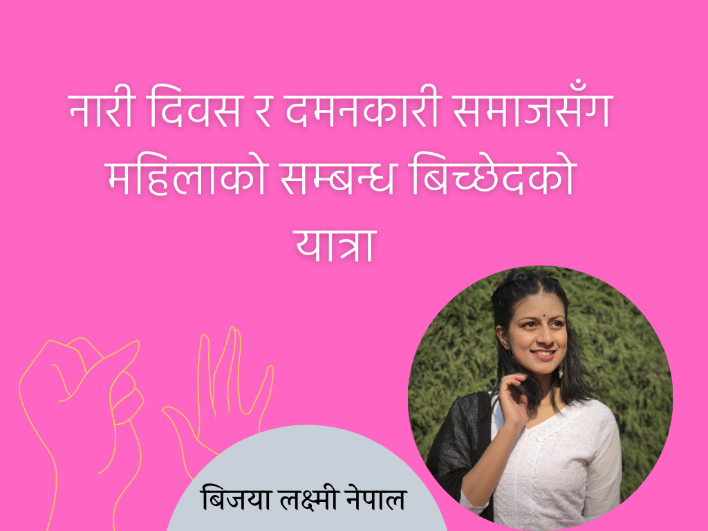 यो सम्बन्ध यती गाढा छ कि महिलाले चाहेर पनि समाजसँग सम्बन्ध विच्छेद गर्न गाह्रो पर्छ । यही अफ्ट्यारो चिर्दै वर्षैँ पुरानो समाज र यसको दमनकारी सम्बन्धले कुजीएका महिलाले सुरुवात गरेको सम्बन्ध विच्छेदको एक पाटो हो महिला दिवस ।