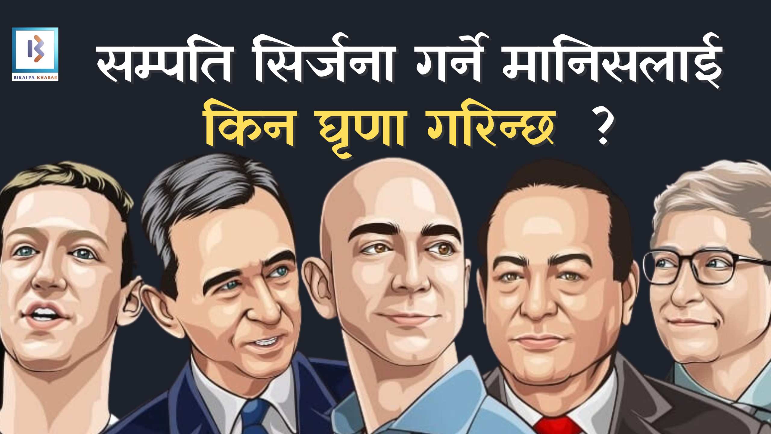 निसन्देह पनि बिल गेट्स, ज्याक मा, स्टिभ जब्स, जेफ बेजोज, एलन मस्क, वारेन वफेट, अम्बानी, आदि जस्ता व्यक्तिहरुले अथाह पैसा कमाएका छन् । तर उनीहरुले पैसा कमाउदा अरुको अहित गरि पैसा कमाएका छन् कि, धेरै भन्दा धेरै मानिसहरुको चाहना र आवश्यकता पुरा गरी उनीहरुको जीवनमा उपयोगिता सिर्जना गरेर सम्पति आर्जन गरेका हुन् भन्ने प्रश्न यहाँ महत्वपूर्ण हुन आउछ l जबकी स्वयं यी व्यक्तिहरु कुनै बेला न्यून आय भएका मानिसहरुको वर्गमा पर्दथे ।