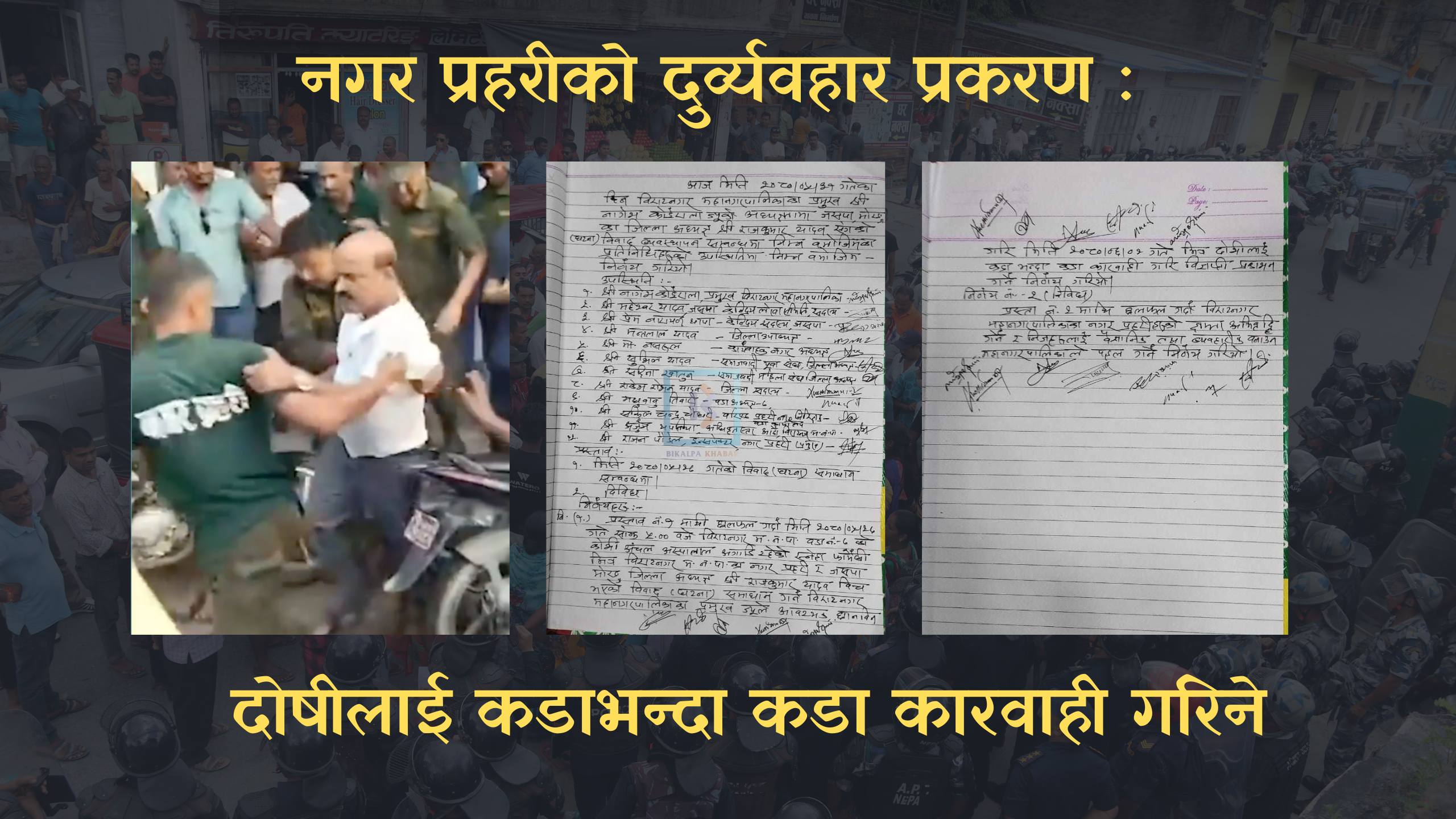 सविन घिमिरे । जनता समाजवादी पार्टीका मोरंग जिल्ला अध्यक्ष राज कुमार यादवमाथि नगर प्रहरीद्वारा दुर्व्यवहार भएको घटनाले उब्जाएको विवाद समाधानको निम्ति दोस्रो चरणको वार्ता आज सम्पन्न भएको छ । विराटनगर महानगरपालिकाका मेयर नागेश कोइरालाको अध्यक्षतामा उनकै कार्यकक्षमा बसेको वार्ताले २ वटा प्रस्तावमाथि छलफल गरी निर्णय गरेको छ ।