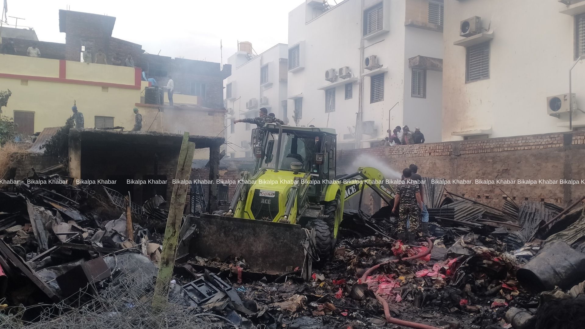 विराटनगर। विराटनगर ७ स्थित सातघुम्तीमा रहेको एक कवाडी गोदाममा आज दिउँसो भएको आगलागीमा परी मृत्यु हुनेको संख्या २ पुगेको छ । आगो नियन्त्रणको क्रममा पुरिएको अवस्थामा एक जनाको शव फेला परेको प्रहरीले जनाएको छ । शव नचिनिने अवस्थामा रहेको छ ।