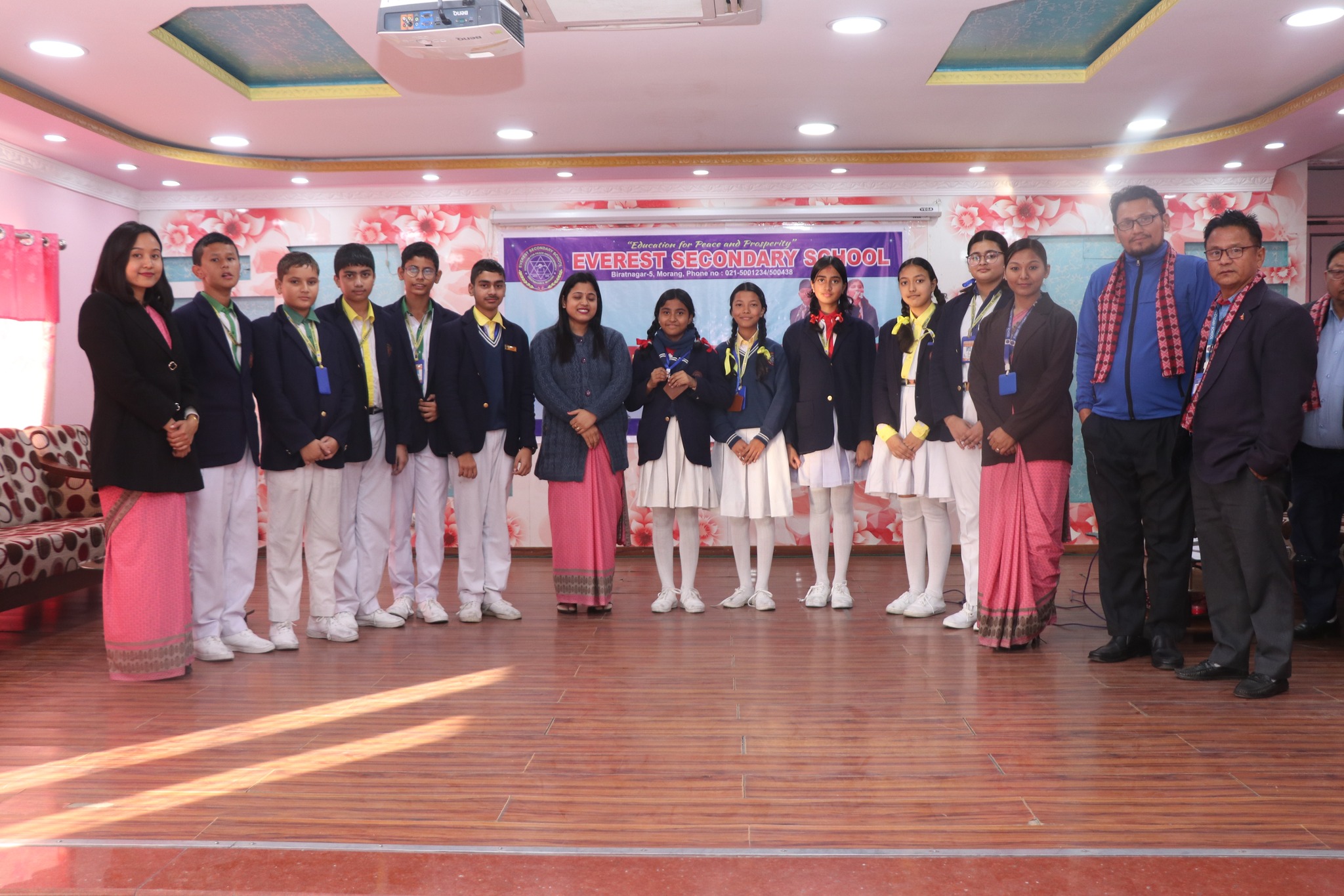 विराटनगर । विराटनगर– ५ स्थित एभरेष्ट सेकेण्डरी स्कुलमा वक्तृत्वकला प्रतियोगिता सम्पन्न भएको छ । कक्षा ६ र ७ तथा कक्षा ८ र ९ का विद्यार्थीहरु बिच दुई तहमा वक्तृत्वकला प्रतियोगिता आयोजना गरिएको थियो ।