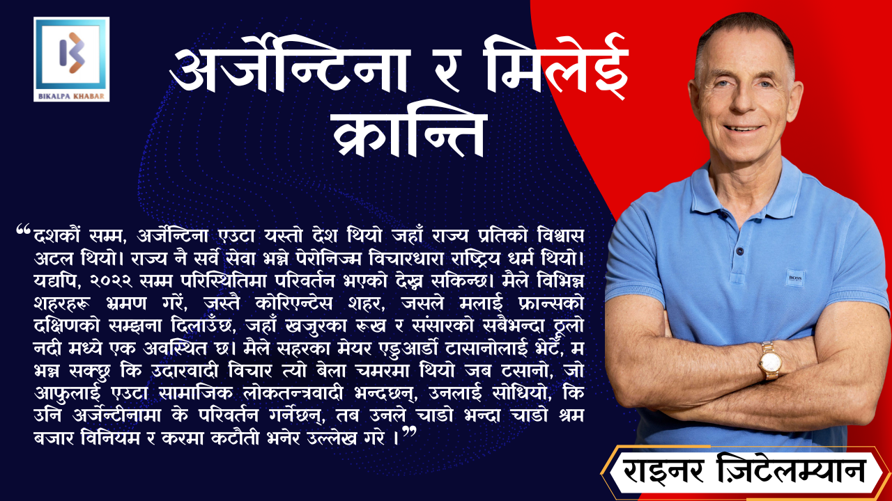 अर्जेन्टीनाबाट हामीले के सिक्न सक्छौं? १९७० को बेलायत जस्तै, थ्याचर वा मिलेइ जस्ता पुँजीवादी सुधारकहरूले मौका पाउनु अघि स्थिति नाटकीय रूपमा बिग्रनु पर्छ। तर, त्यति मात्रले पनि पुग्दैन । कुनै पनि अर्थपूर्ण सुधारभन्दा पहिले जनमतमा परिवर्तन हुनुपर्छ। थ्याचरको नेतृत्व हुनुअघि, एडम स्मिथ इन्स्टिच्युट र आर्थिक मामिला संस्थान जस्ता प्रभावशाली थिंक ट्याङ्कहरूले सार्वजनिक बहसलाई आकार दिन महत्त्वपूर्ण भूमिका खेलेका थिए। अर्जेन्टीनामा स्वतन्त्रता वादी थिंक ट्याङ्कहरूले मिलेइको लागि पनि मार्ग प्रशस्त गर्यो, जसले अब उनीहरूले पहिले रोपेका बिउको फल खान सक्षम भएका छन्।